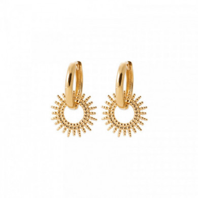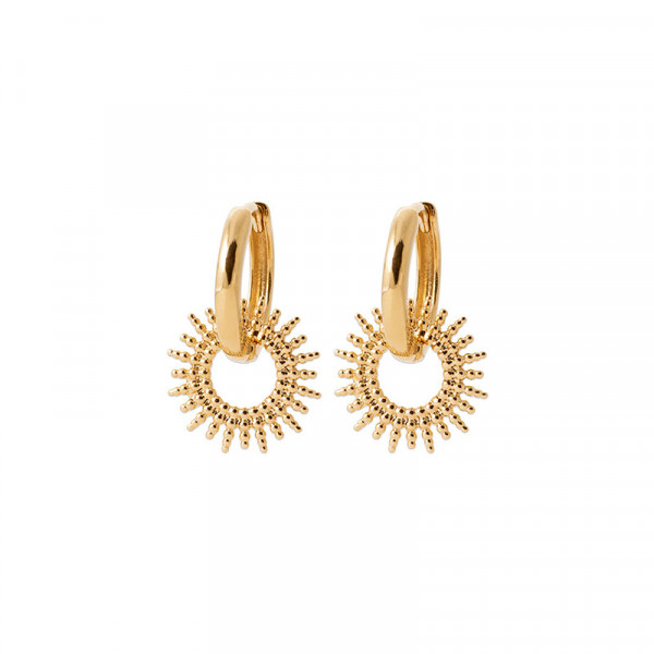 Affirmez votre style avec ces mini créoles en plaqué or composées d'une breloque en forme de soleil, suspendue à un anneau rond lisse, très facile à mettre et à retirer grâce à sa charnière invisible.