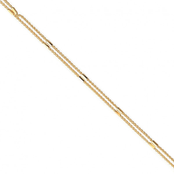 Bracelet or jaune double rangs maille spiga alternée de petits tubes. Fermoir anneau ressort. Longueur : 18 cm. Ce bracelet or original est un bijou en or 750 millièmes de qualité, norme française. Garantie 2 ans.