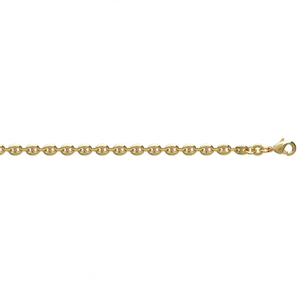 Collier plaqué or chaine grain de café. Largeur : 4 mm. Fermoir mousqueton. Longueur : 50 cm. Cette chaine est un bijou en plaqué or 18 carats de qualité, norme française. Marque française. Garantie 2 ans.
