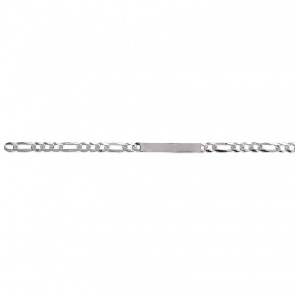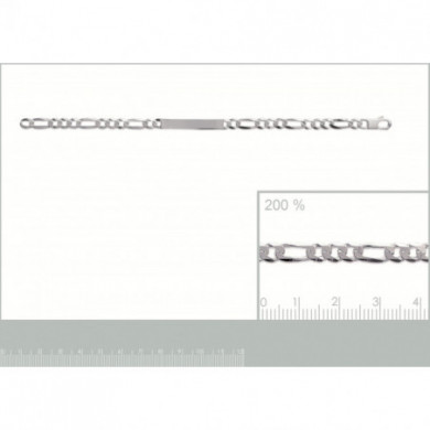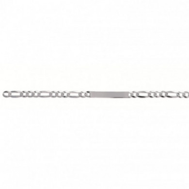 Bracelet argent 925 gourmette identité avec plaque rectangle, maille figaro alternée une grande maille et trois petites.