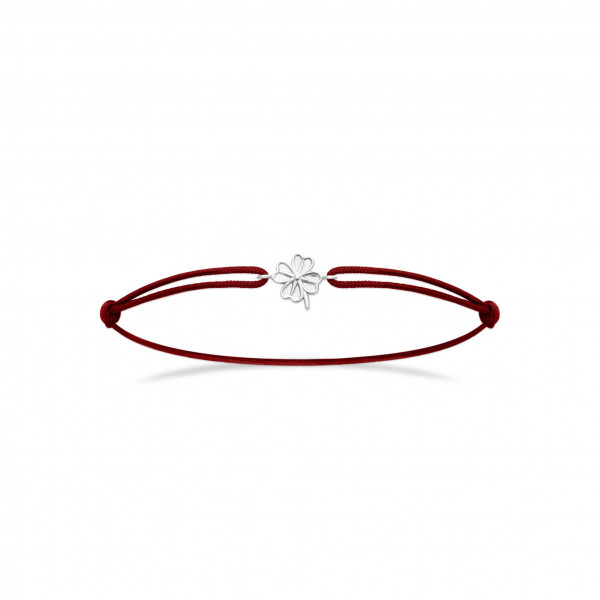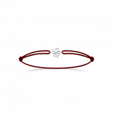 Laissez-vous séduire par ce bracelet argent composé d'un cordon nylon rouge irisé avec en son centre un délicat pendentif en forme de trèfle