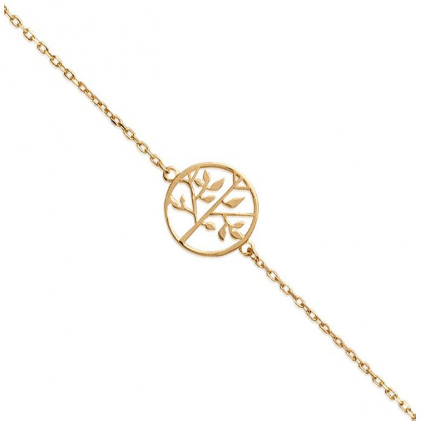 Laissez-vous séduire par ce bracelet en plaqué or pendentif arbre de vie ajouré dans un cercle.