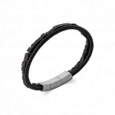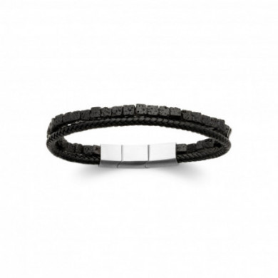 Bracelet cuir et pierre homme noire multirangs. Largeur totale du bracelet : 7 mm. Fermoir aimanté en acier inoxydable. Longueur ajustable de 21 cm à 19 cm en retirant une maille (facile à faire par vous-même). Ce bracelet intemporel est un bijou acier inoxydable de qualité en cuir et pierre véritable. Marque française. Quelles sont les propriétés, vertus et signification de cette pierre ? En lithothérapie la pierre de lave apporte courage, force et confiance en soi.