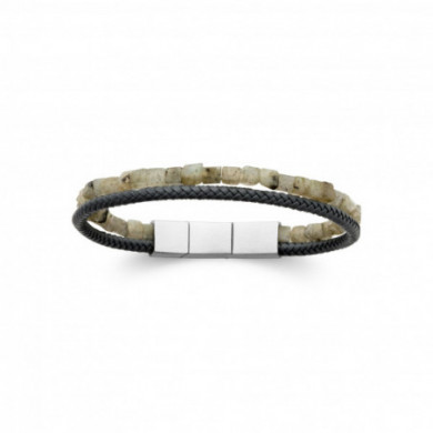 Bracelet cuir et pierres homme gris multirangs. Largeur totale du bracelet : 7 mm. Fermoir aimanté en acier inoxydable. Longueur ajustable de 21 cm à 19 cm en retirant une maille (facile à faire par vous-même). Ce bracelet intemporel est un bijou acier inoxydable de qualité en cuir et pierres véritable. Marque française. Quelles sont les propriétés, vertus et signification de cette pierre ? En lithothérapie la Labradorite symbolise la protection contre les énergies négatives, la séduction et la régénération.