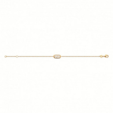 Bracelet plaqué or souple. Largeur maxi : 7 mm. Fermoir mousqueton. Longueur totale ajustable à 16 ou 18 cm. Ce bracelet femme est un bijou en plaqué or 18 carats de qualité et oxydes de zirconium. Garantie 2 ans. Marque française.