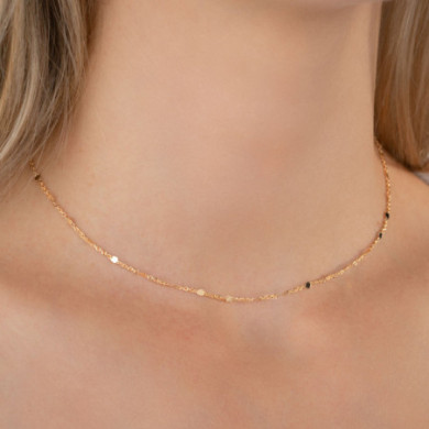 Collier plaqué or ras de cou. Fermoir mousqueton. Longueur totale du collier ajustable à 38, 40 ou 42 cm. Ce collier femme est un bijou en plaqué or 18 carats de qualité. Garantie 2 ans. Marque française.