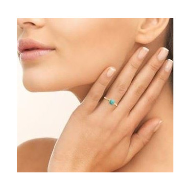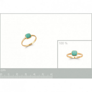Bague plaqué or avec une amazonite. Largeur maxi : 7 mm. Cette bague existe en différents tours de doigt. Cette bague femme est un bijou en plaqué or de qualité ornée d'une amazonite. Garantie 2 ans. Marque française.