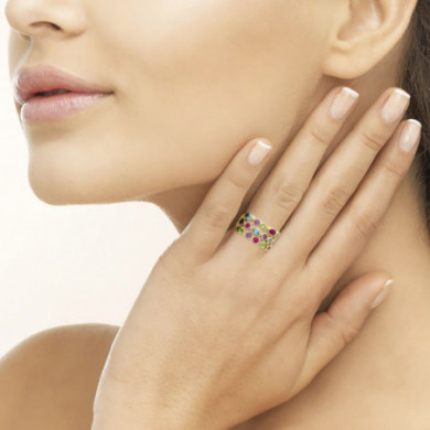 Sublimez votre main avec cette bague en plaqué or ornée d'oxydes de zirconium multicolore serti perlé