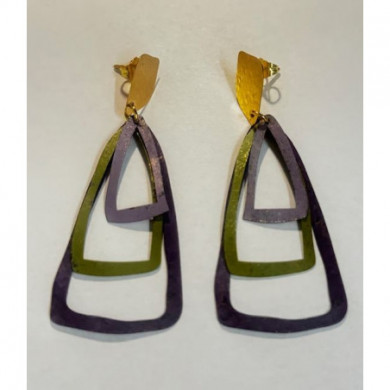 Boucles d'oreilles pendantes bronze. Longueur totale : 77mm. Largeur maxi : 29mm. Système belge (tige + poussette belge). Ces boucles d'oreilles femme sont en bronze de qualité, norme française. Marque française. Garantie 2 ans.