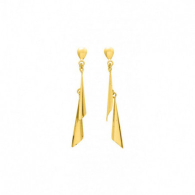 Boucles d'oreilles pendantes en or jaune 750 millièmes (ou 18 carat). Largeur maxi : 4 mm. Système attache : tige + poussette. Longueur totale : 33 mm. Garantie : 2 ans. Livrées avec un certificat d'authenticité.