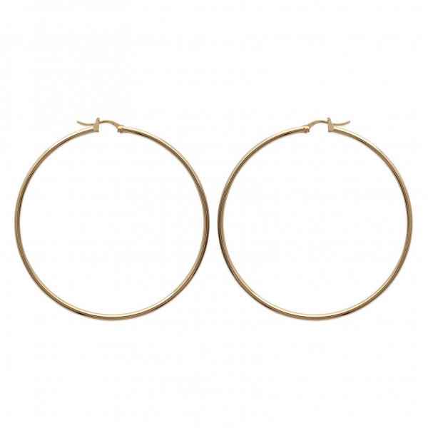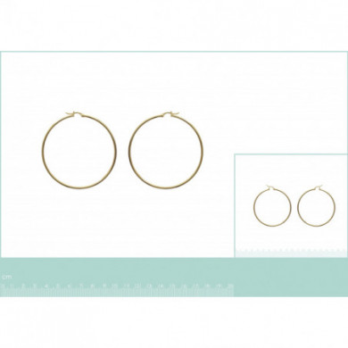 Créoles plaqué or. Diam. : 60 mm. Epaisseur : 2 mm. Système tige à clipser dans un U.