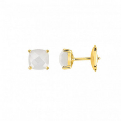 Boucles d'oreilles JOELLI or jaune Pierre de lune (dim. : 6 x 6mm) serti 4 griffes. Système d'attache sécurisé ALPA pm avec rondelle à ressort.Ces boucles d'oreilles originales sont en or 750 millièmes (ou 18 carats), norme française. Garantie 2 ans. Livrées avec un certificat d'authenticité. S'agissant de pierres naturelles, leur aspect et leur couleur peut varier selon les modèles.