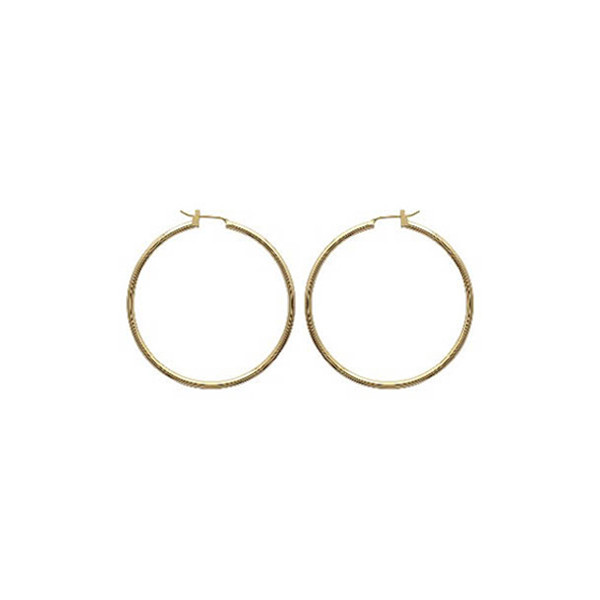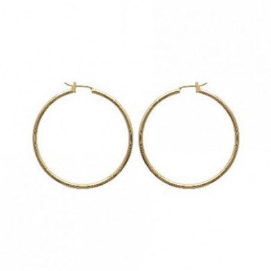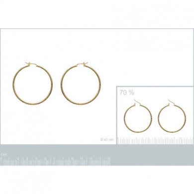 Créoles plaqué or. Diam. : 40 mm. Epaisseur : 2 mm. Système tige à clipser dans un U.